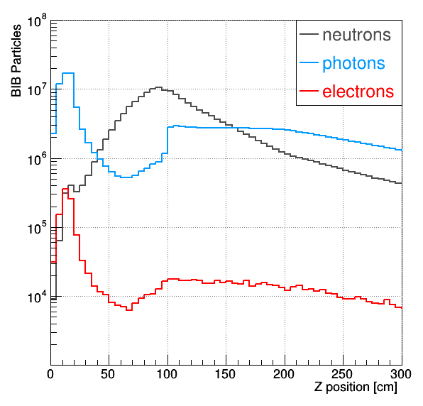 This is not the case at the Muon Collider, where BIB is made of hundreds of millions of low-momentum particles, illuminating almost uniformly the whole detector. This creates a huge computational problem, especially for the stage 2 of the simulation process – propagation of each particle through the detector material to record individual energy deposits. Simulating the passage of one very energetic particle requires much fewer computations than simulating a thousand of low-momentum particles.