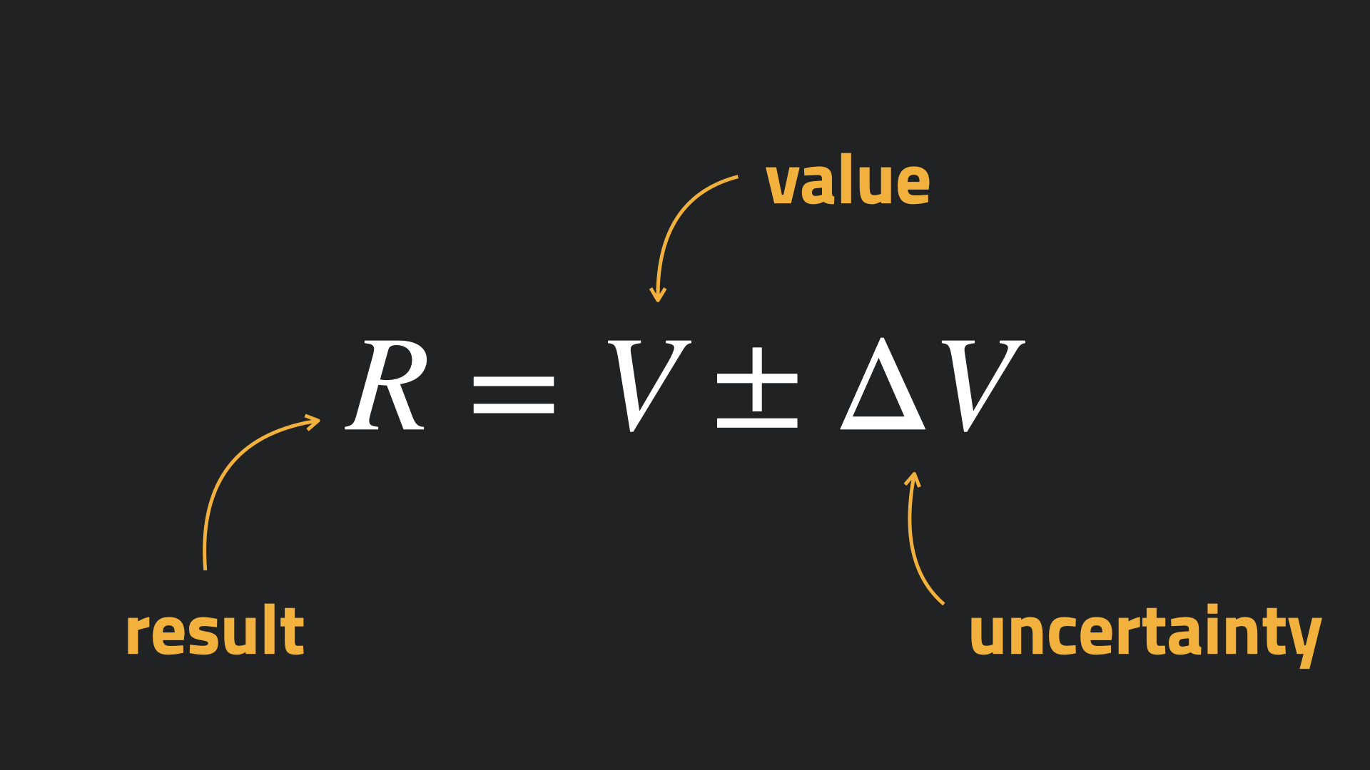 This is why we look not for exact equality but for consistency between different results. This requires the result (R) to include not only the measured value (V) but also its uncertainty (ΔV), which accounts for all the known sources of variations.