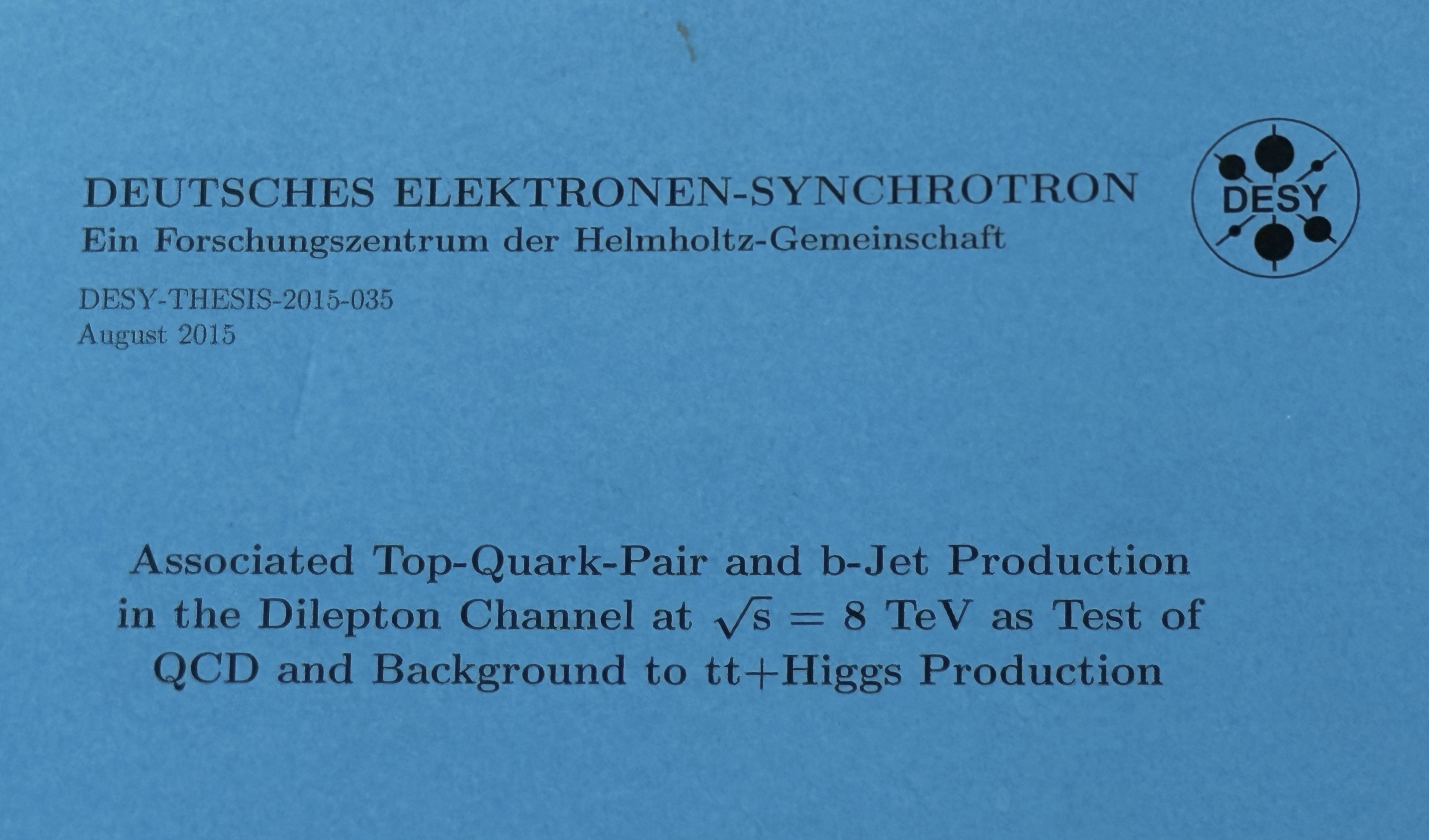 💡 The title of my PhD thesis was: “Associated top-quark-pair and b-jet production in the dilepton channel at sqrt(s)=8 TeV as test of QCD and background to tt+Higgs production“. It had 60+ pages of detailed explanation of all the aspects of my analysis (what and how has been measured), and only 3 pages with the actual results (plots and numbers).
